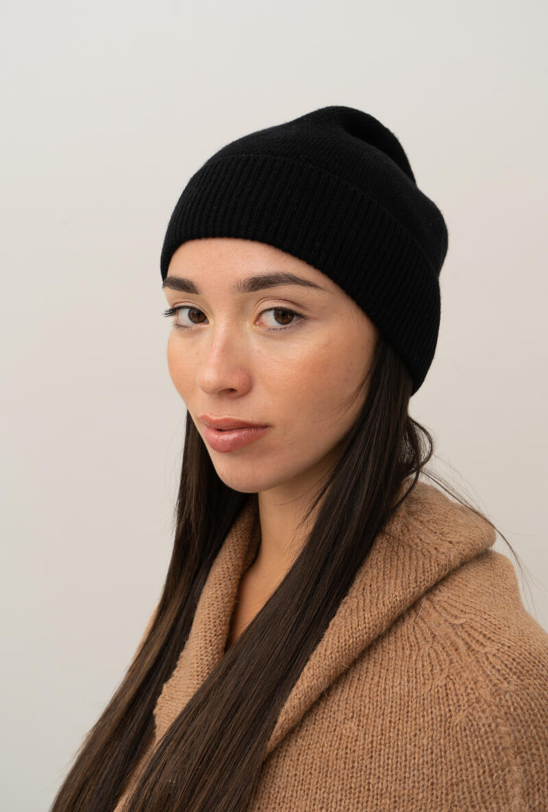 Berretto in maglia rasata realizzato in filato lana/cashmere, è l'accessorio necessario ed ideale per un guardaroba invernale ben curato.