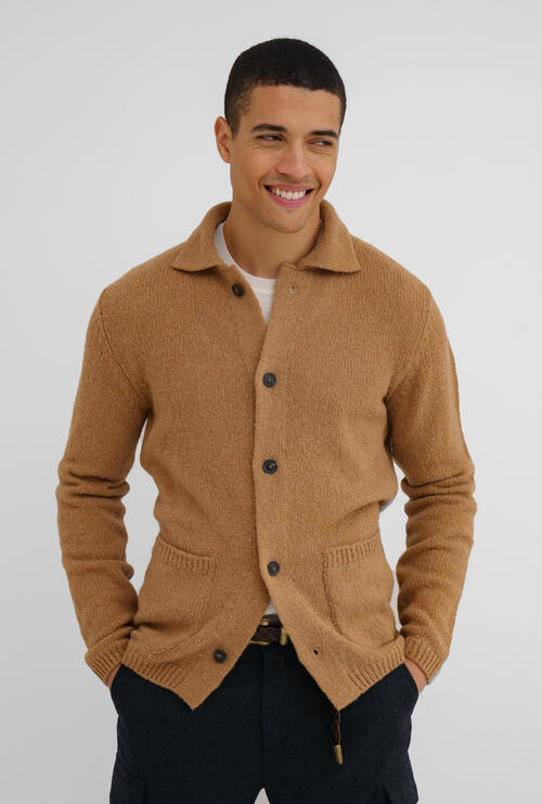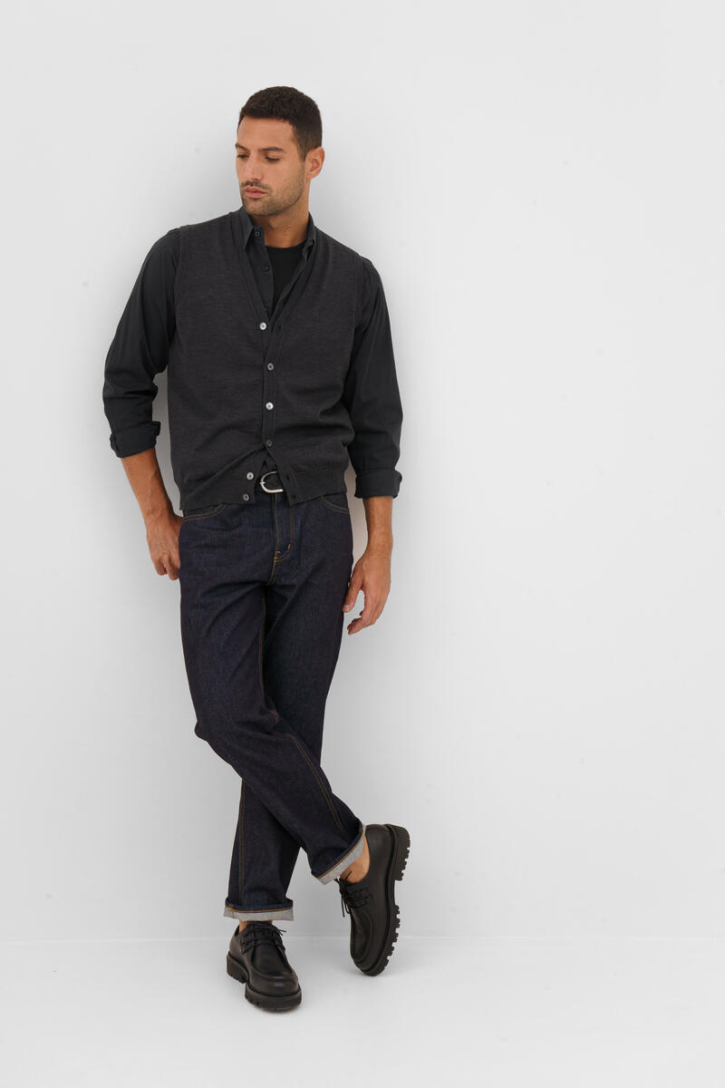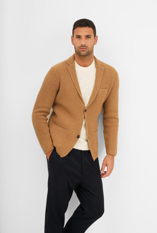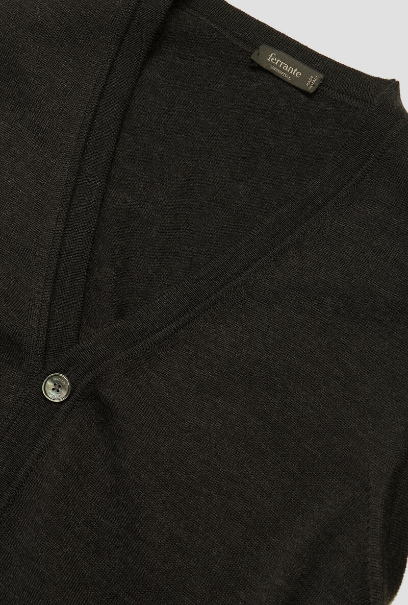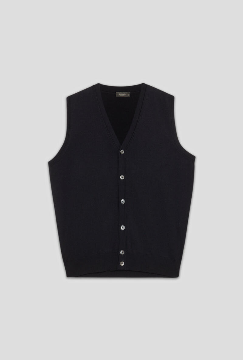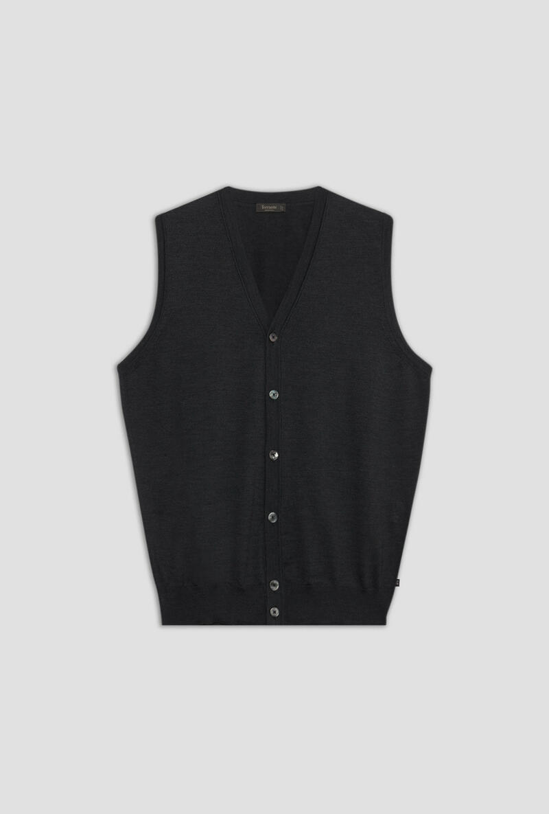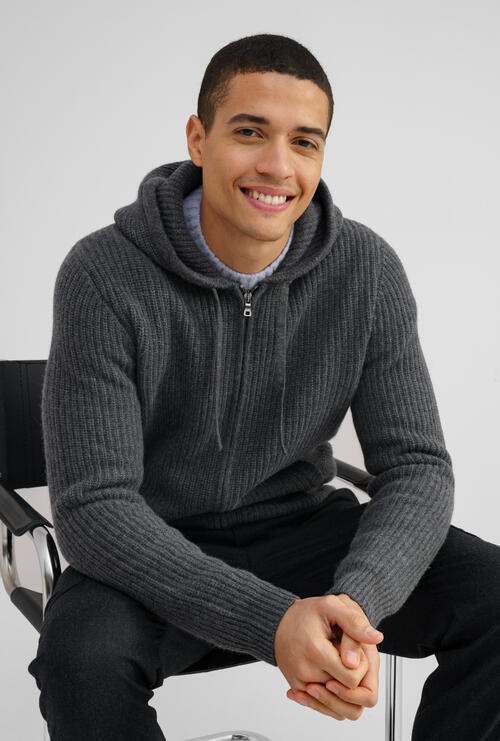 Capo realizzato con pura lana merino extrafine, arrichito dai bordi a costina e da una vestibilità con linee accostate e equilibrate.