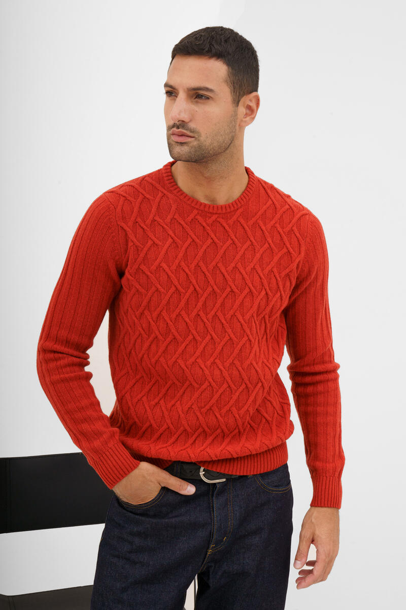 Maglia con lavorazione all over.Bordi a costina.Made in Italy,
