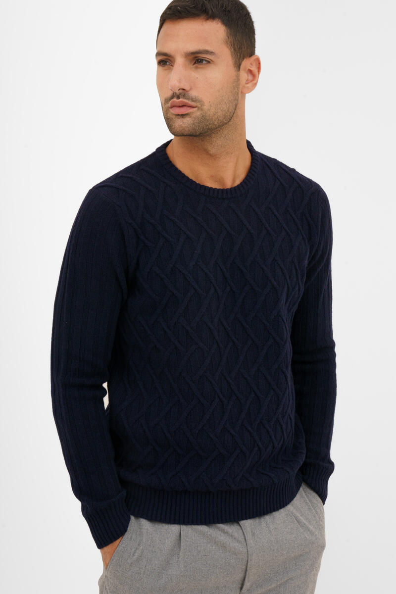 Maglia realizzata con una lavorazione a intrecci sul davanti con maniche e schiena a coste piatte. Un capo essenziale nel guardaroba maschile, un fit moderno compleata la proposta stilistica.