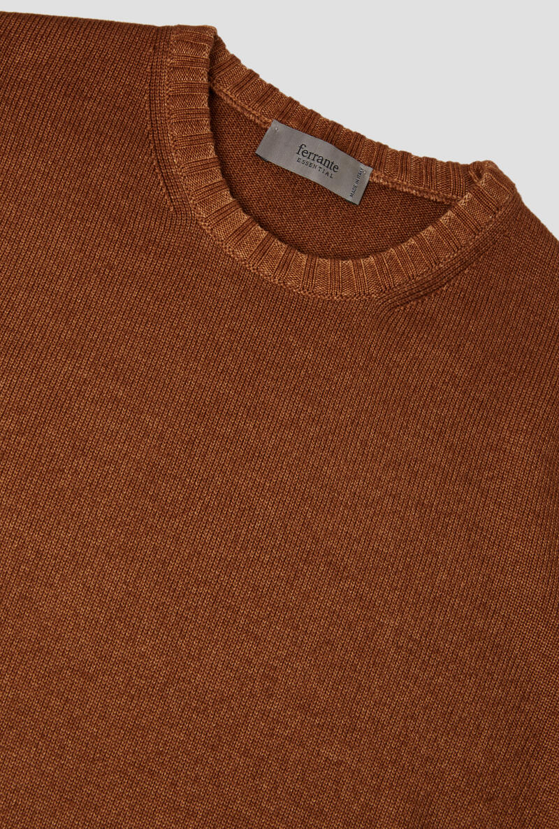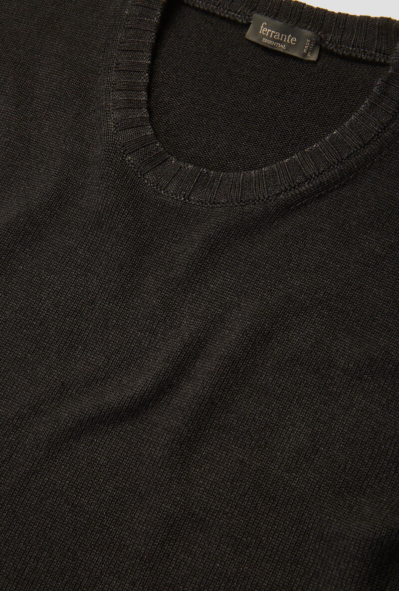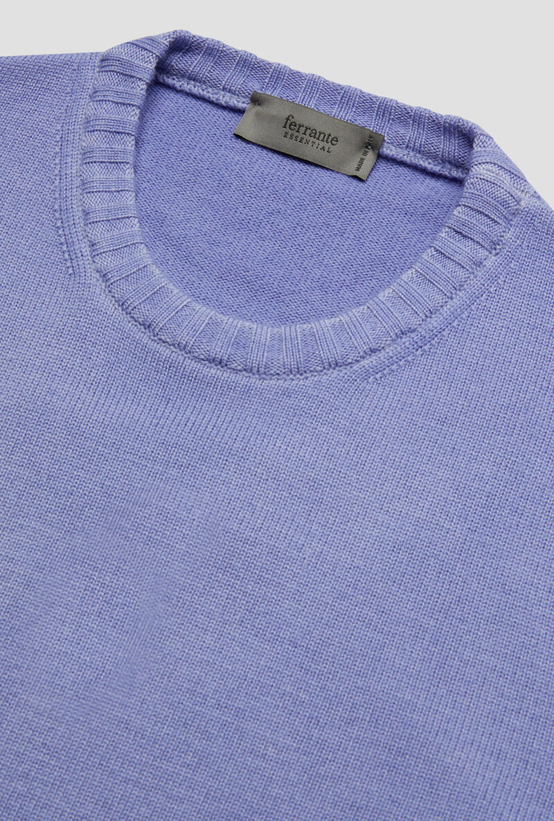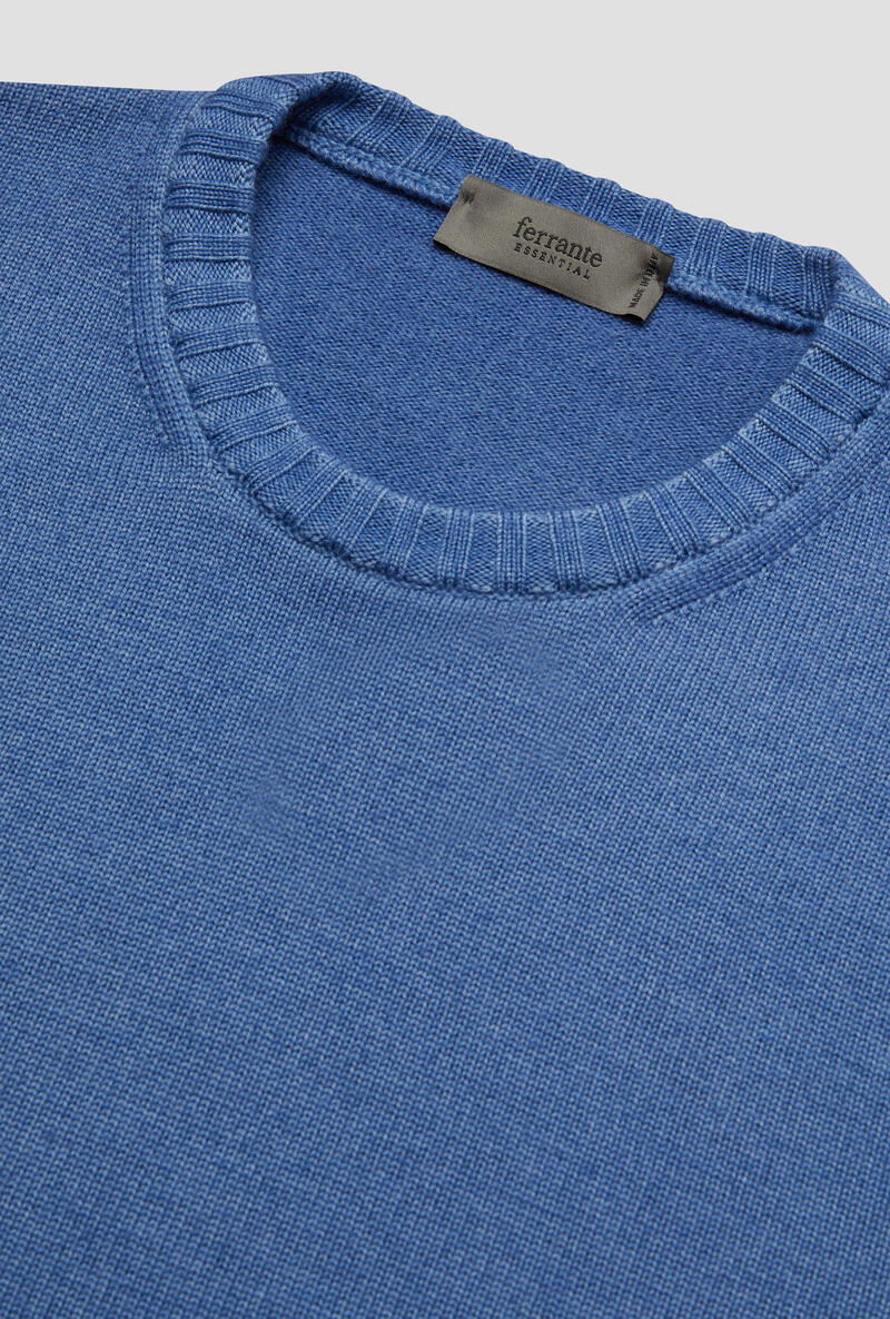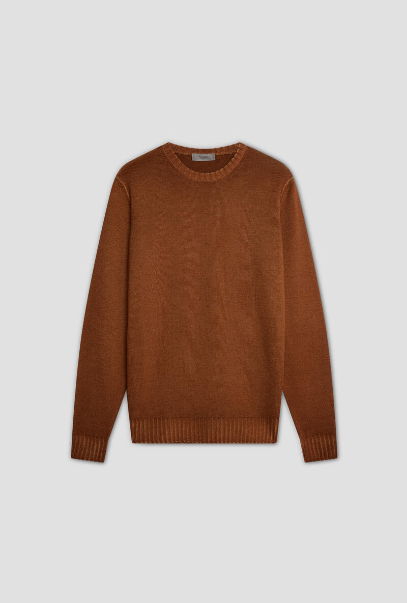 Girocollo in lana merinos extrafine, lavorato a due fili , una tintura effetto "fast dye" completa il look. La vestibilità slim arricchisce il capo.