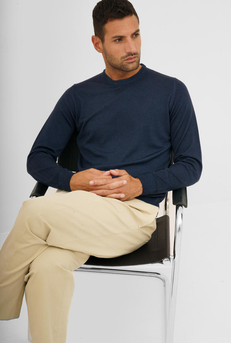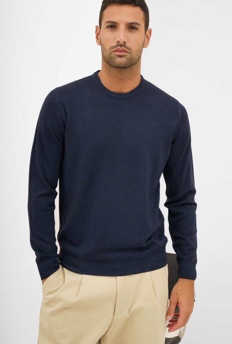 Maglia tinta in capo , realizzata in pura lana merinos. La tintura effetto "fast dye" rende il capo dinamico e contemporaneo , caraterrizzato inoltre da una vestibilità slim con linee asciutte e vicine al busto.