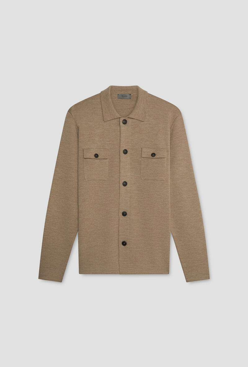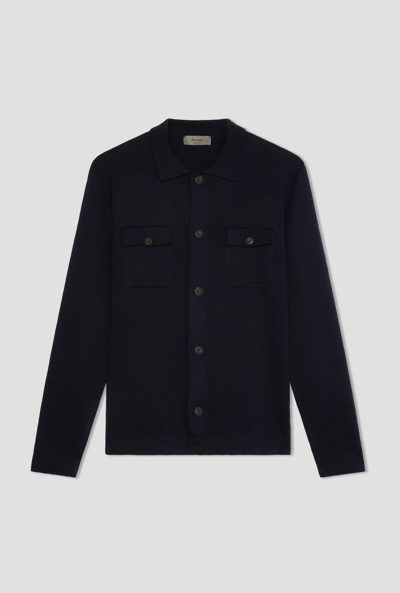 Il modello è alto 1,86 m e indossa la taglia 50.Overshirt in maglia.Punto Milano.Tasche a toppa.