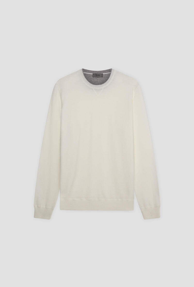 Felpa in maglia arricchita da un leggero collo in contrasto, rifinita manualmente. Un capo pensato per l'uomo contemporaneo e realizzato in pura lana merinos. La vestibilità slim completa la proposta stilistica. Fondo e polsi doppi.