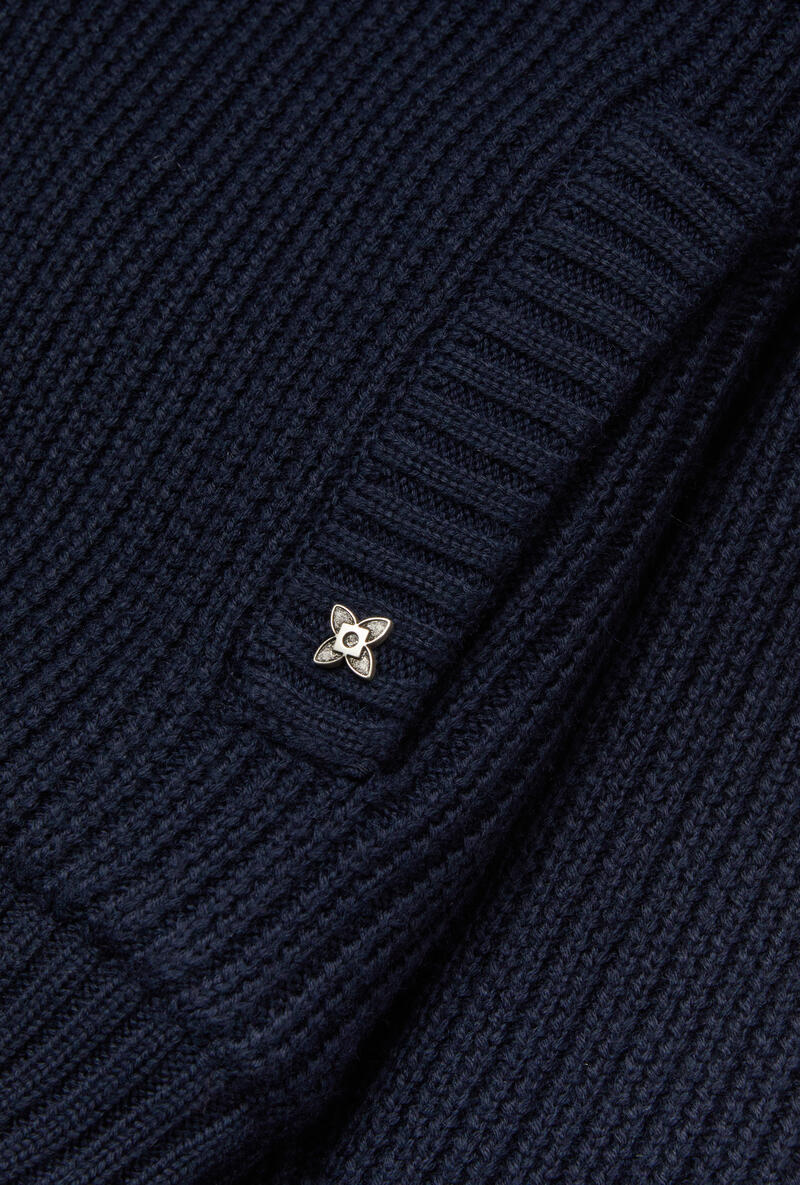 Giubbino in maglia, realizzato con una lavorazione all over, arricchito da due tasche sul davanti e dal cappuccio staccabile con zip nascosta.