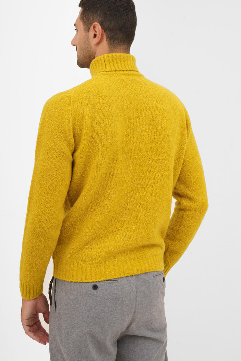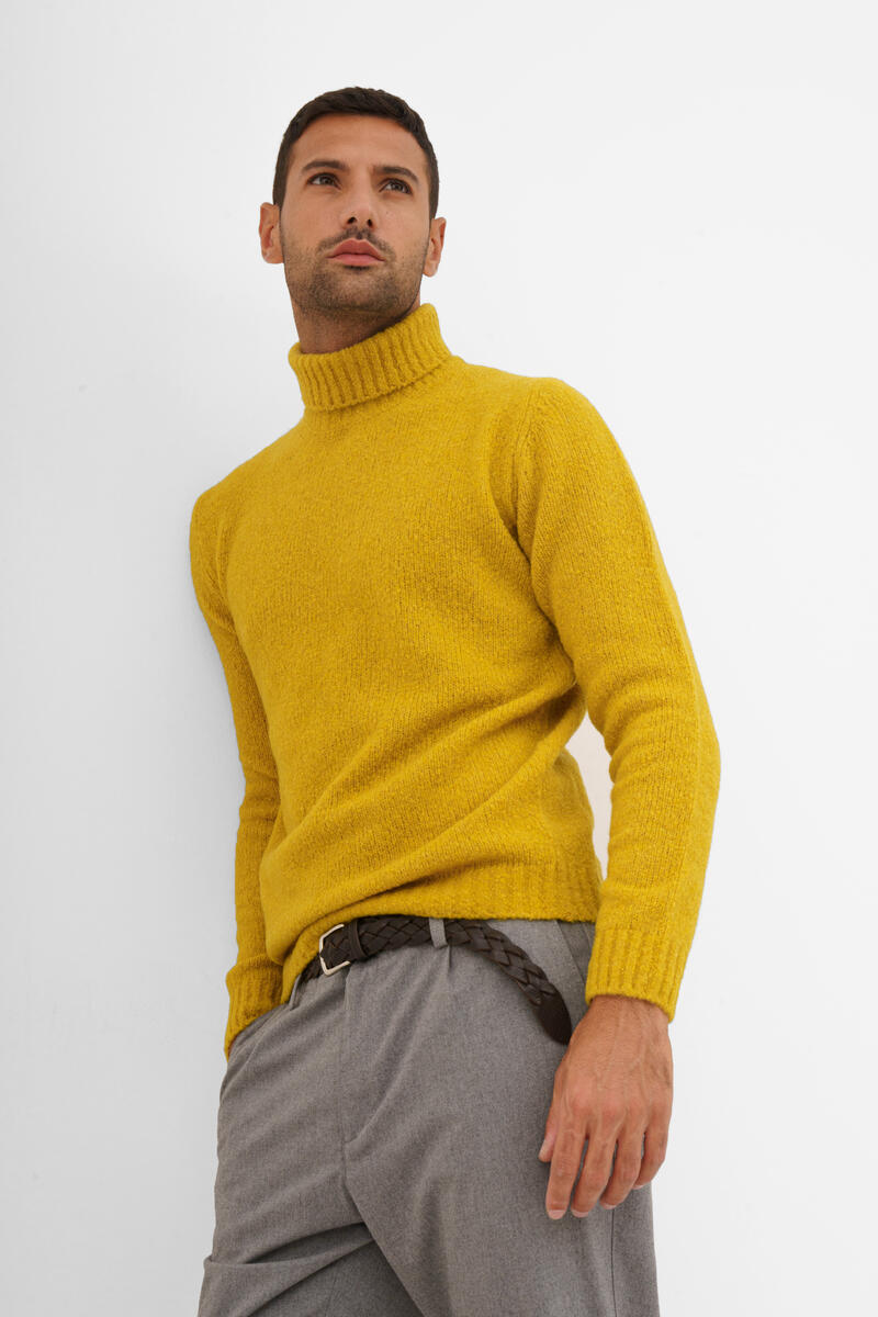 Dolcevita realizzato in filato misto cashmere con un effetto malfilè.